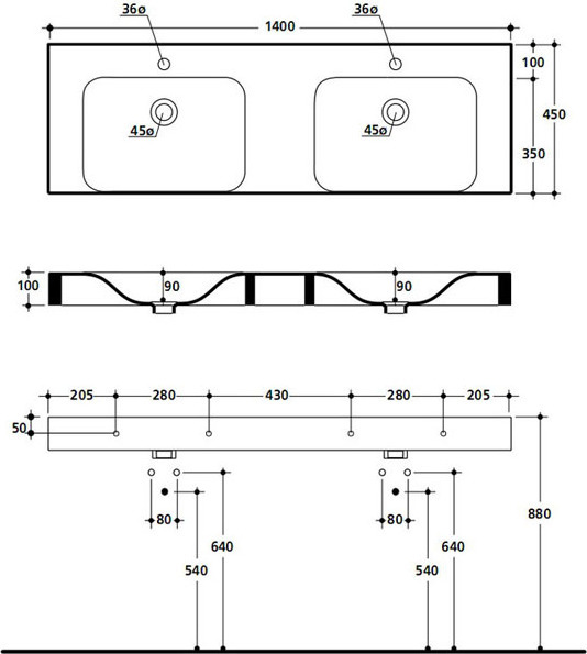 Раковина подвесная двойная Kerasan Cento 140 см 353601*1