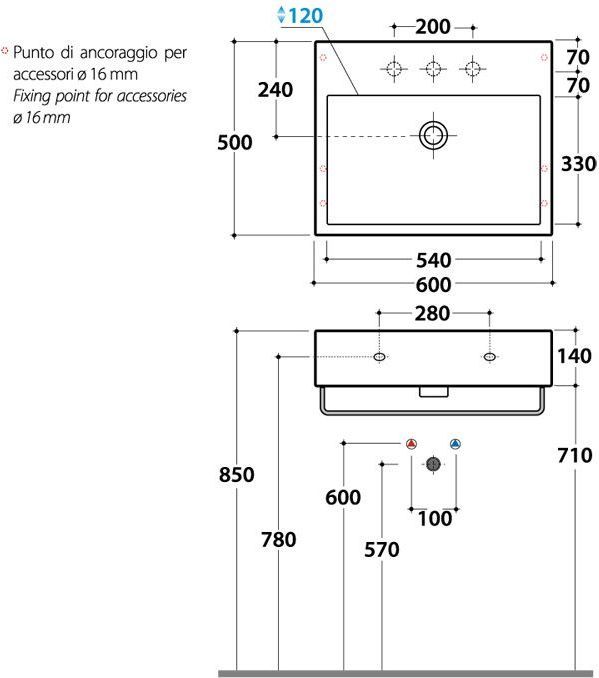 Раковина подвесная Globo Classic SCQ61.BI*0, размер 600х500 мм, с 3 намеченными отверстиями под смеситель и креплением, цвет белый.