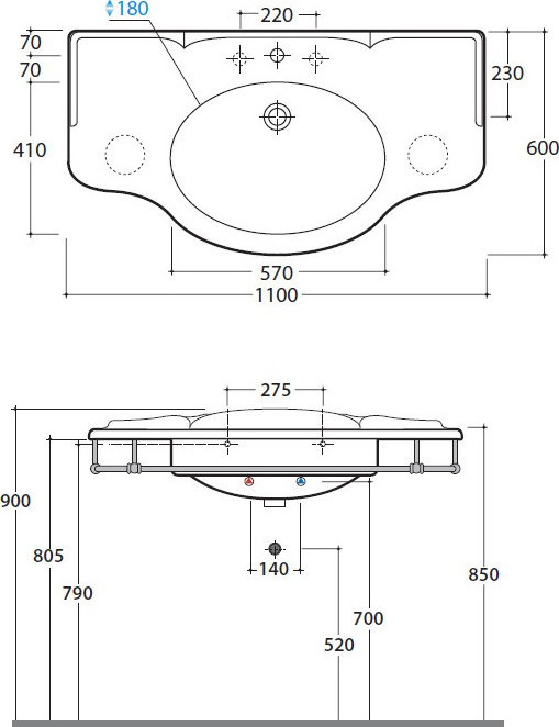 Раковина подвесная Globo Paestum PA022.BI*1, комплект креплений, размер 1100х600 мм. Цвет белый.