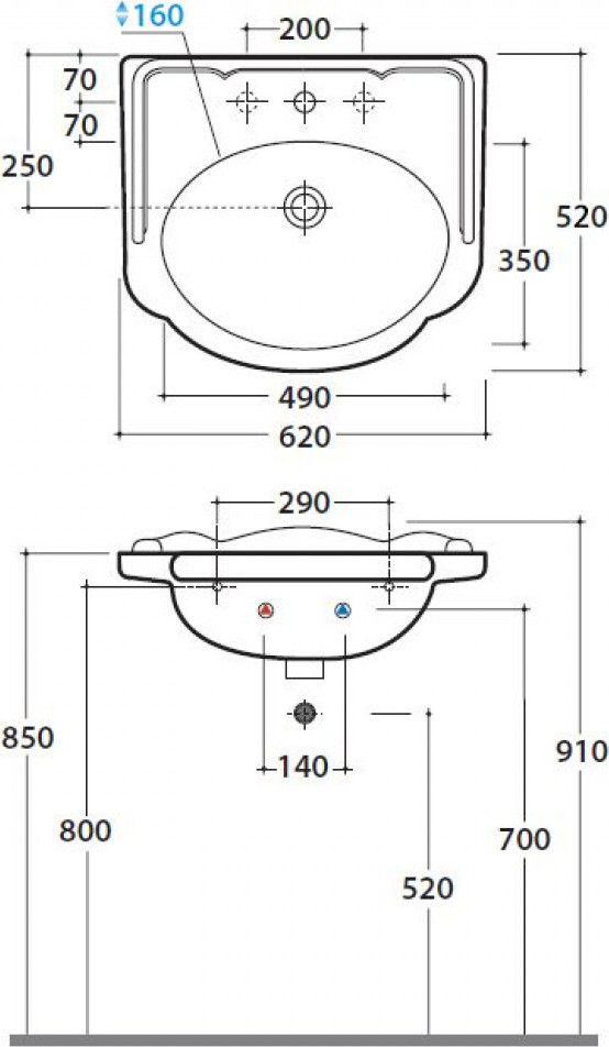 Раковина подвесная Globo Paestum PA057.BI*1, с комплектом креплений, размер 620х520 мм. Цвет белый.