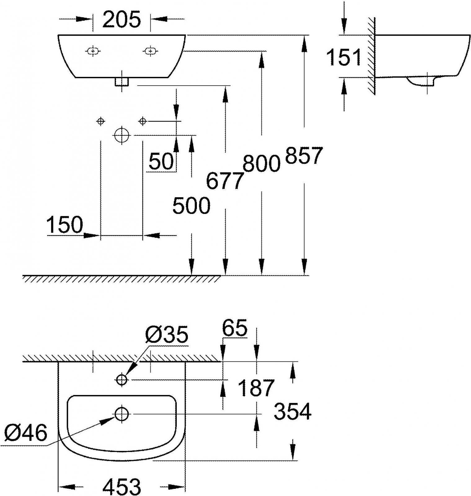 Раковина подвесная Grohe Bau Ceramic 45х35,4 см. 39424000 Цвет белый.