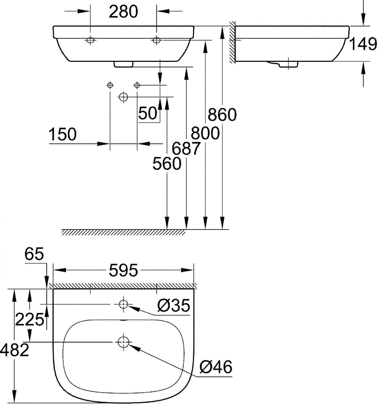 Раковина подвесная Grohe EURO CERAMIC 55х45 см. 39336000 Цвет белый.