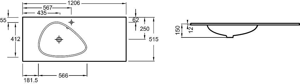 Раковина подвесная Jacob Delafon Nouvelle Vague 120 см EB3022-DE2, черный матовый
