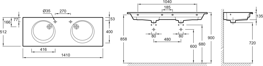 Раковина подвесная Jacob Delafon Odeon Rive Gauche 140 см EXAS112-Z-00