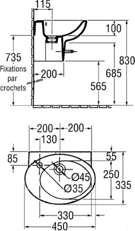 Раковина подвесная Jacob Delafon Presquile 450х335 мм E1337-00, с 1 отверстием для смесителя, цвет - белый.