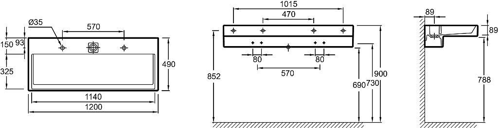 Раковина подвесная Jacob Delafon Terrace 120 см с подсветкой EXB9112-00
