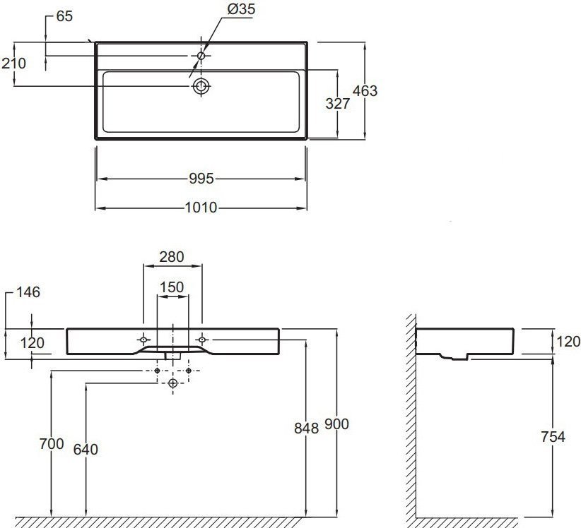 Раковина подвесная Jacob Delafon Vivienne 1010х463 мм EXBJ112-00 с 1 отверстием под смеситель, цвет - белый.