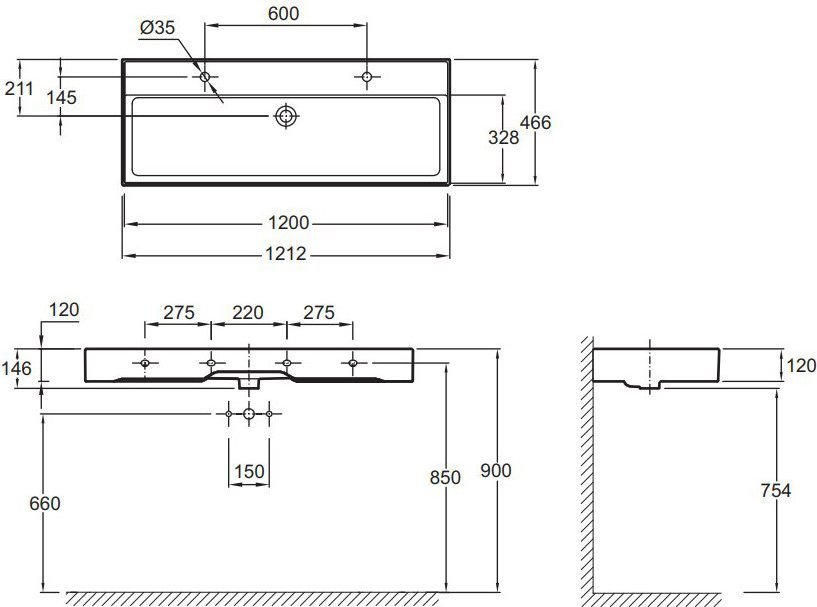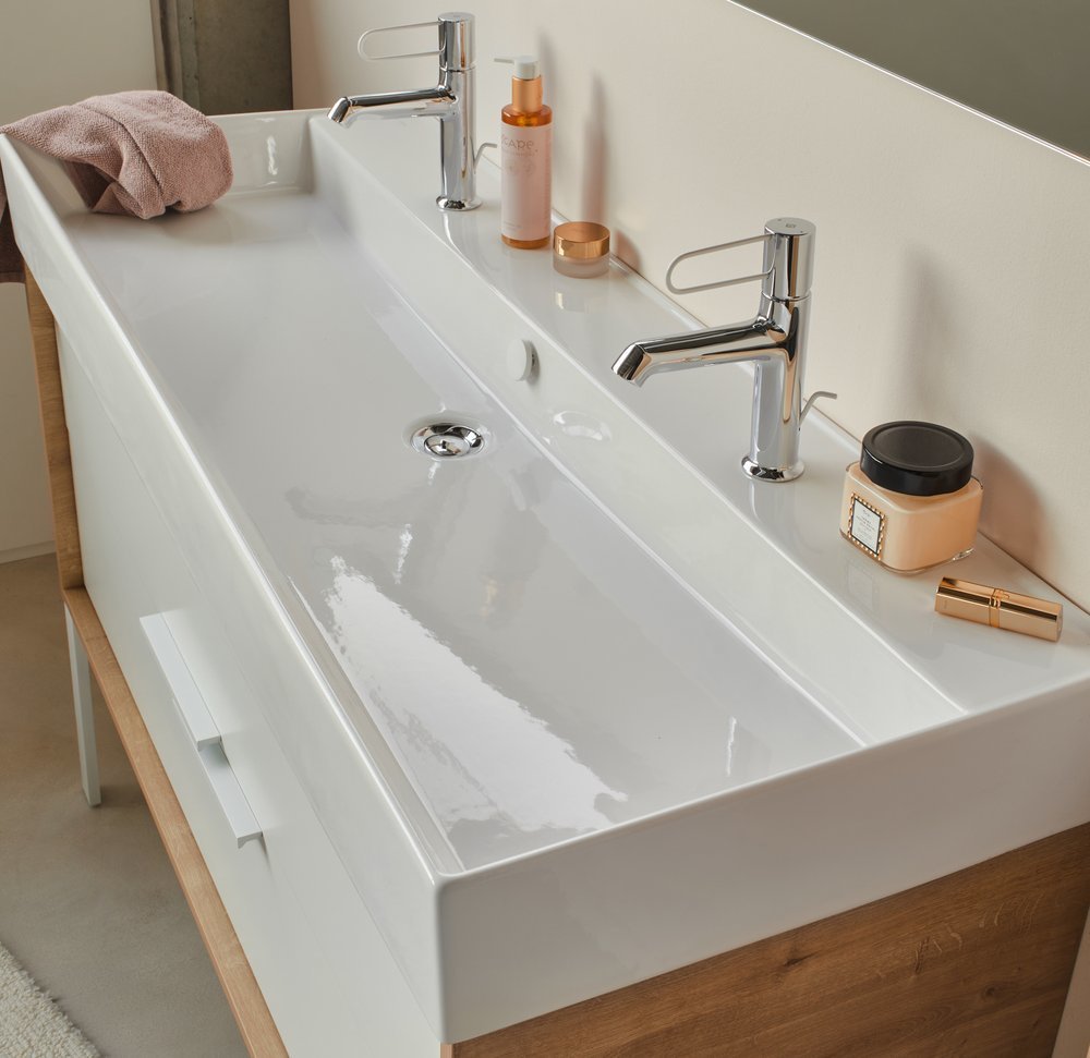 Раковина подвесная Jacob Delafon Vivienne 1212х466 мм EXBK112-00 с 2 отверстиями под смеситель, цвет - белый.