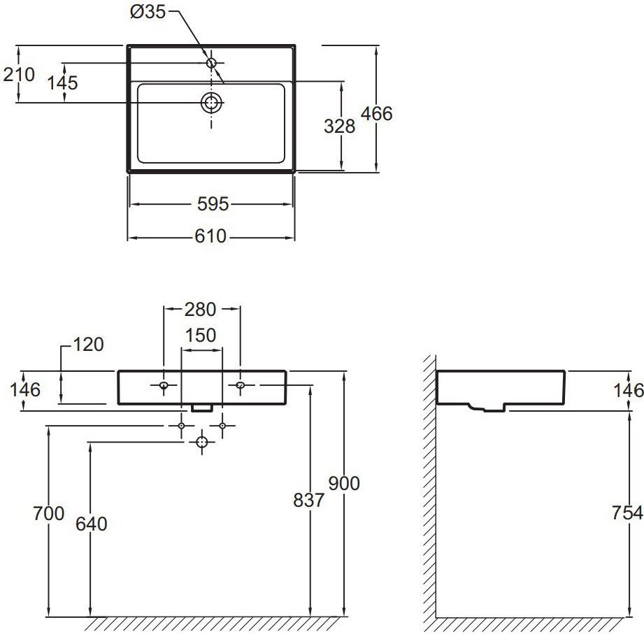 Раковина подвесная Jacob Delafon Vivienne 610х466 мм EXBH112-00 с 1 отверстием под смеситель, цвет - белый.