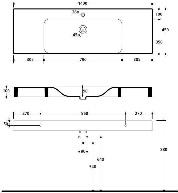 Раковина подвесная Kerasan Cento 140 см 353501*1