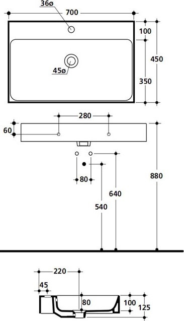 Раковина подвесная Kerasan Cento 70 см 353201*1