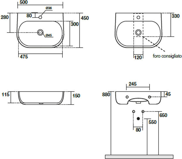 Раковина подвесная Kerasan Nolita, размер 500х450 мм. Цвет белый глянцевый.