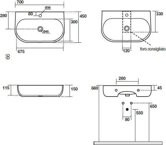Раковина подвесная Kerasan Nolita 534201*1, размер 700х450 мм. Цвет белый глянцевый.
