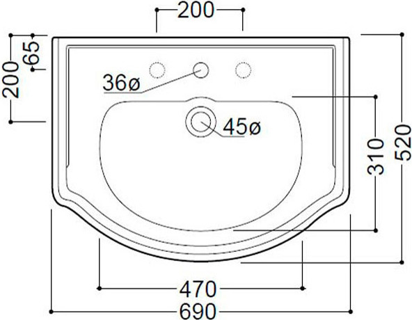Раковина подвесная Kerasan Retro 104601*3, размер 690х520 мм. Цвет белый.