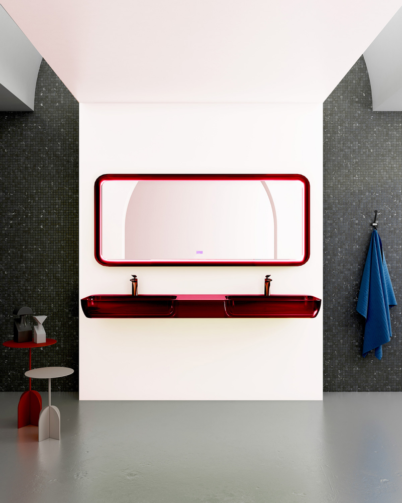 Раковина подвесная прозрачная двойная Abber Kristall 150 см AT2807Rubin, красный