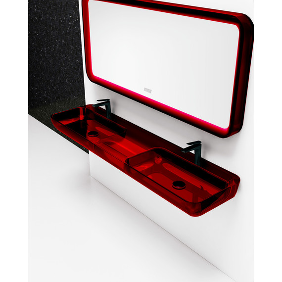 Раковина подвесная прозрачная двойная Abber Kristall 150 см AT2807Rubin, материал полиэфирная смола, цвет красный.