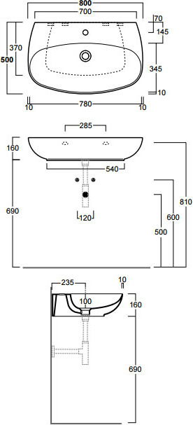 Раковина подвесная Simas Vignoni с креплением, размер 800х500 мм. Цвет белый.