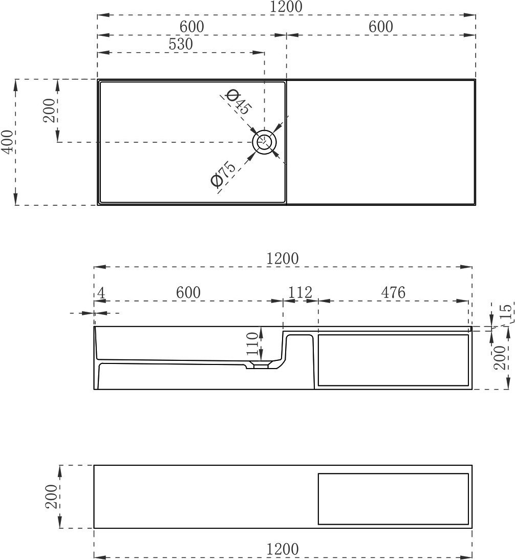 Раковина подвесная Vincea VWB-6S112MW, размер 1200x400x200 мм, цвет белый матовый.