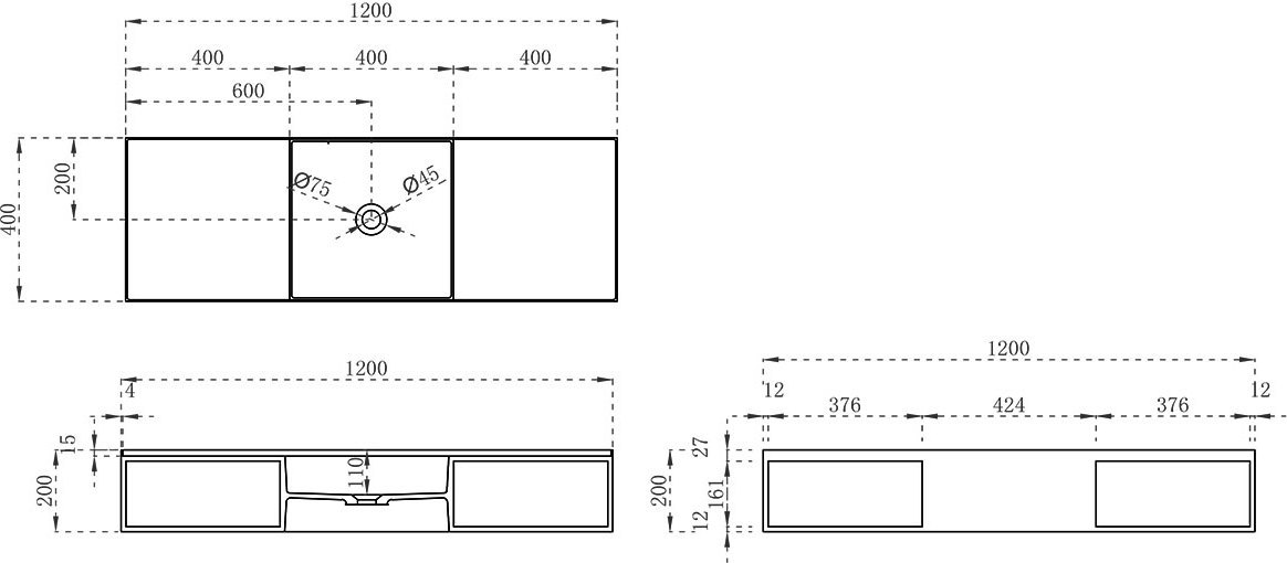 Раковина подвесная Vincea VWB-6S212MW, размер 1200x400x200 мм, цвет белый матовый.