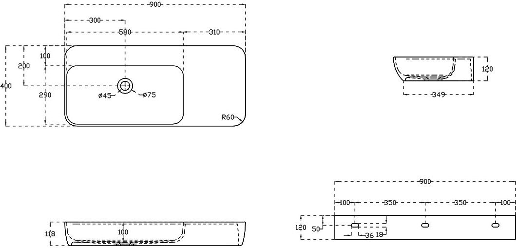 Раковина подвесная Vincea VWB-6S590MW, размер 900x400x120 мм, цвет белый матовый.
