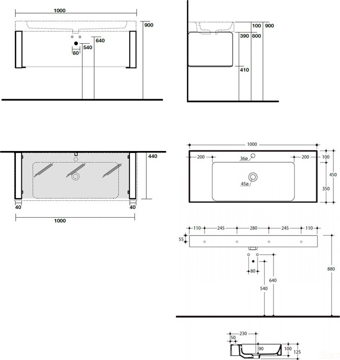 Раковина с консолью Kerasan Cento 100 см 355001*1