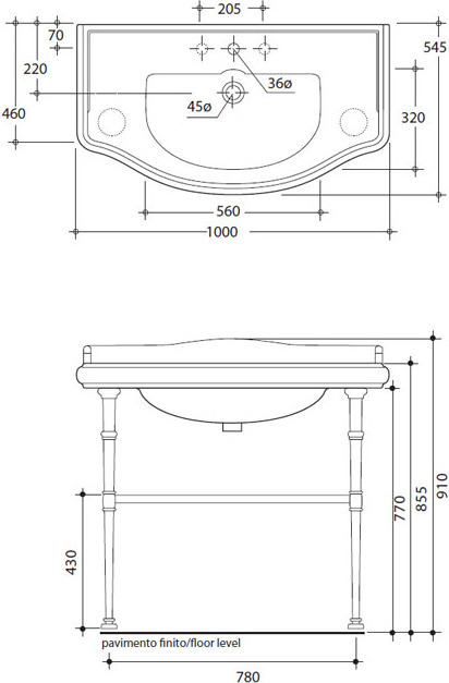 Раковина с консолью Kerasan Retro 100 см 105001*1