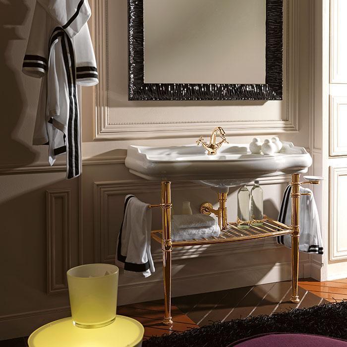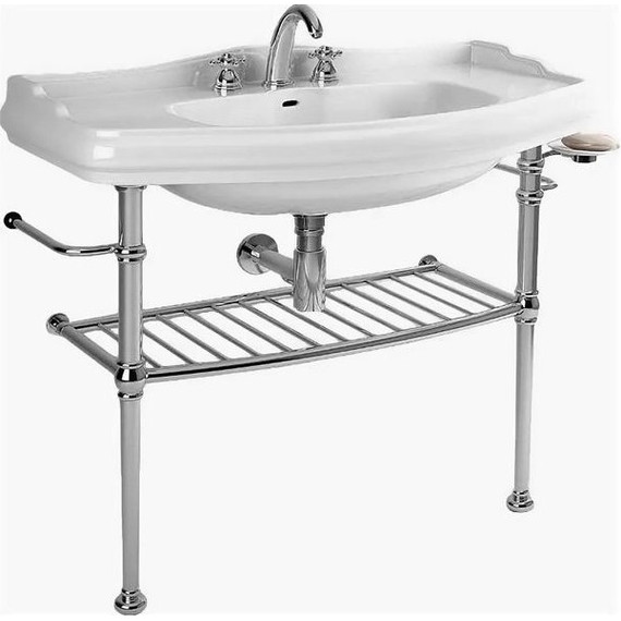 Раковина с консолью Kerasan Retro 105001*1, размер 1000х545 мм с креплением 7602, цвет белый. Консоль - 730090 с полкой-решеткой, полотенцедержателями и мыльницей.