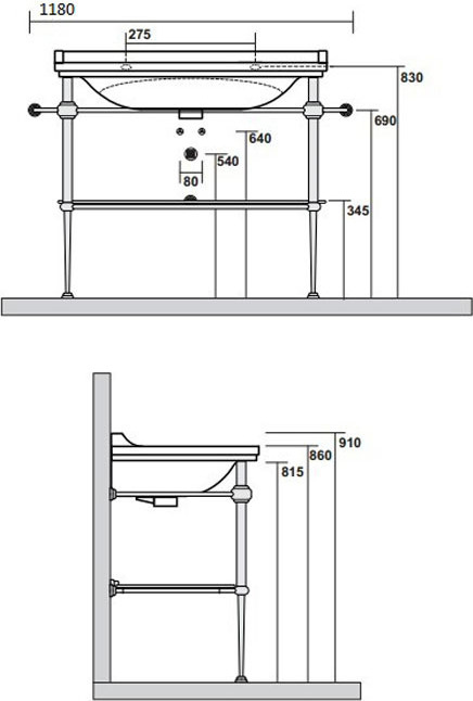 Раковина с консолью Kerasan Waldorf 100 см 4142K1bi/cr*1