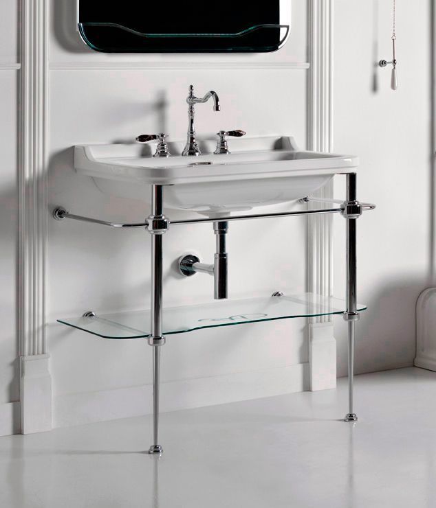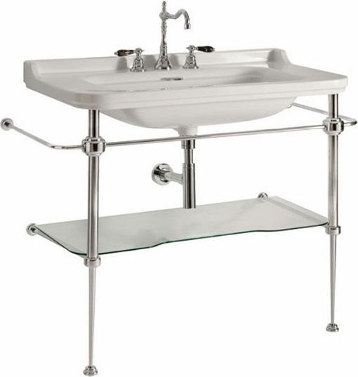 Раковина с консолью Kerasan Waldorf 4141K1bi/cr*1, размер 800х550 мм, цвет белый, заглушка хром. Консоль - 9197K1cr со стеклянной полкой, цвет хром.