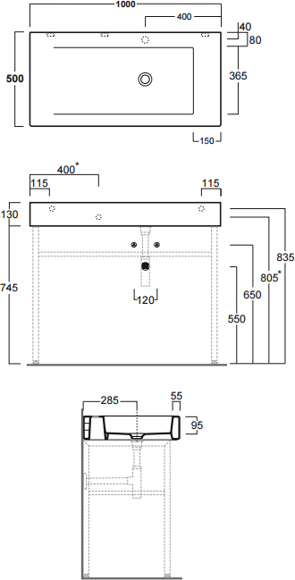 Раковина с консолью Simas Frozen 100 см FZ12bi*0