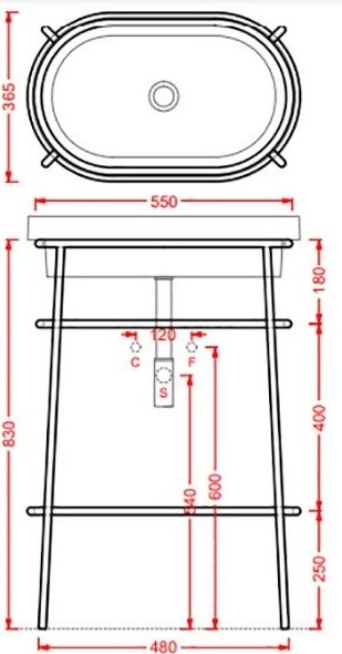 Раковина с металлической консолью ArtCeram Fuori Scala, размер 550х365 мм, консоль чёрная матовая. Цвет чёрный матовый.