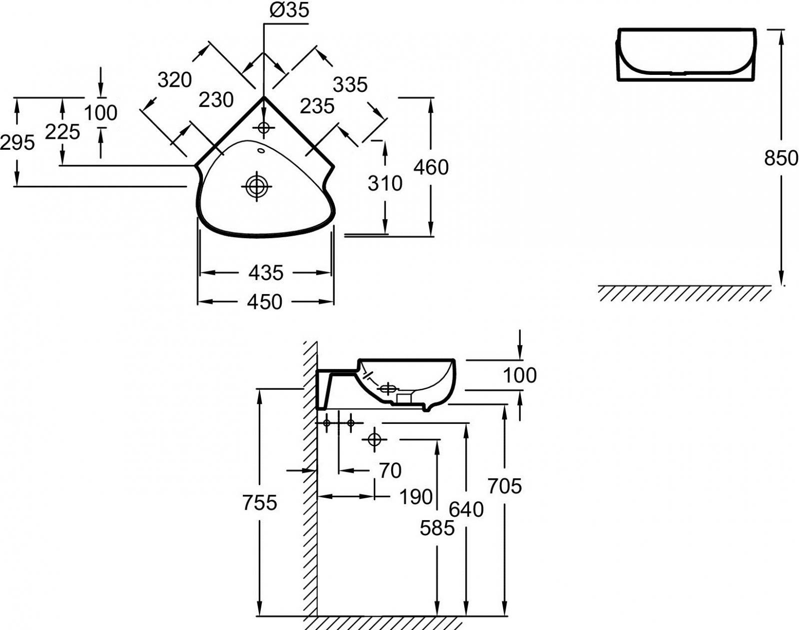 Раковина угловая Jacob Delafon Nouvelle Vague 320х335 мм EGL112-00 с 1-м отверстием под смеситель, цвет - белый.