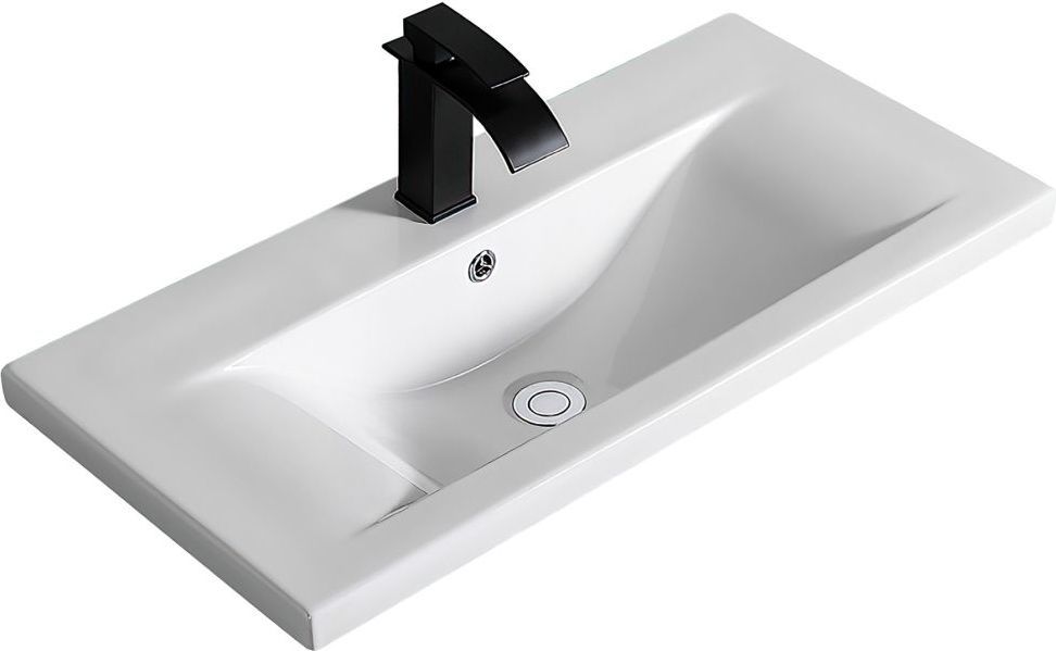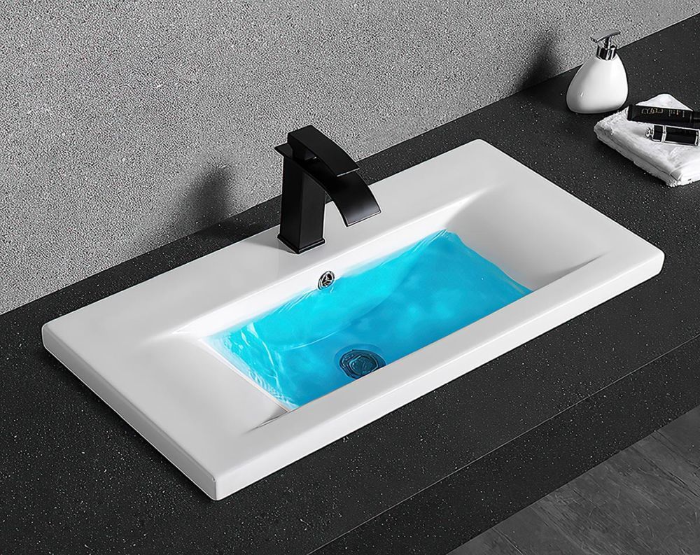 Раковина врезная на столешницу CeramaLux N 9393-100, размер 1000х395 мм, со сливом-переливом и отверстием под смеситель, цвет белый.