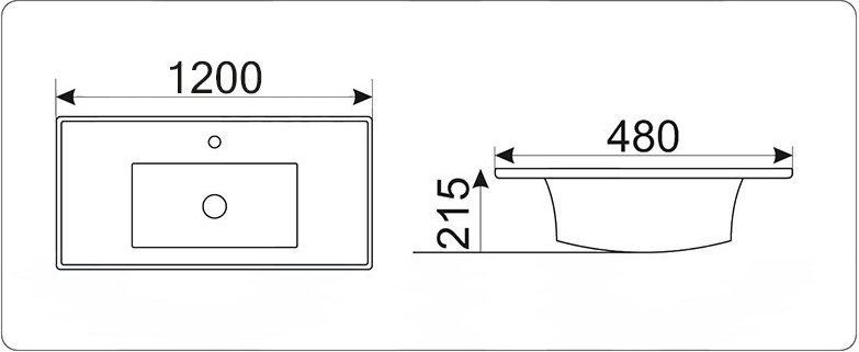 Раковина врезная на столешницу CeramaLux N NYJ840-120, размер 1200х480 мм, со сливом-переливом и отверстием под смеситель, цвет белый.