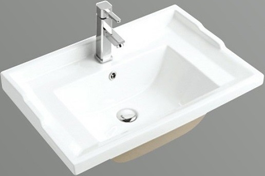Раковина врезная на столешницу CeramaLux N NYJ840-70, размер 700х480 мм, со сливом-переливом и отверстием под смеситель, цвет белый.