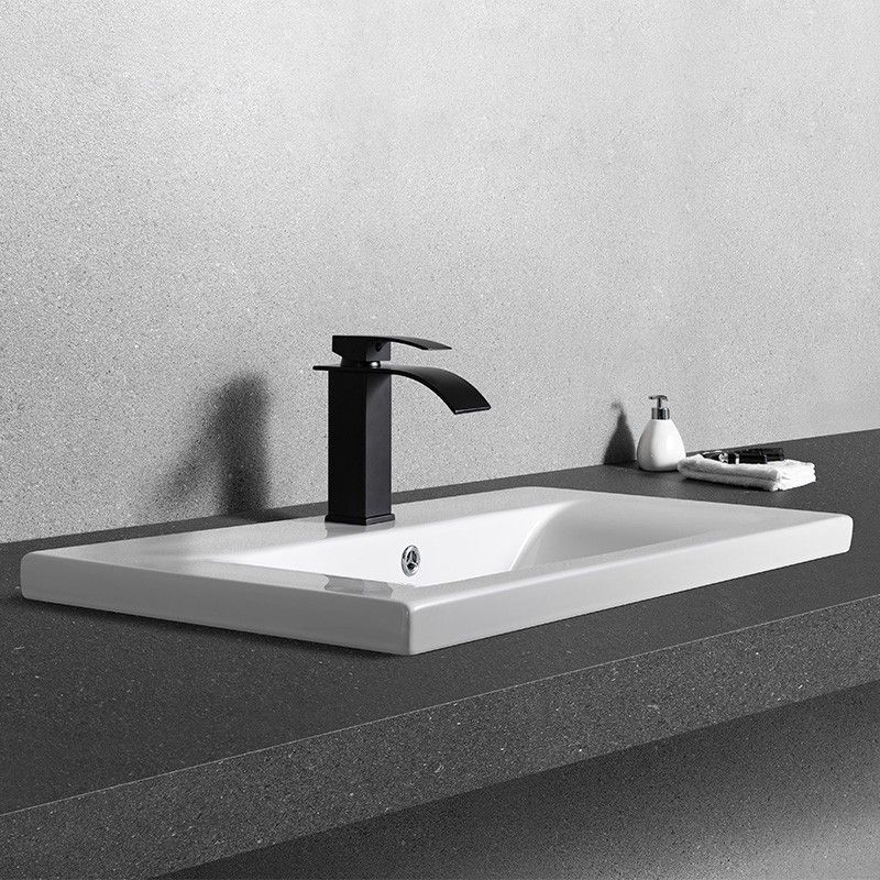 Раковина врезная на столешницу CeramaLux N 9393-80, размер 800х395 мм, со сливом-переливом и отверстием под смеситель, цвет белый.
