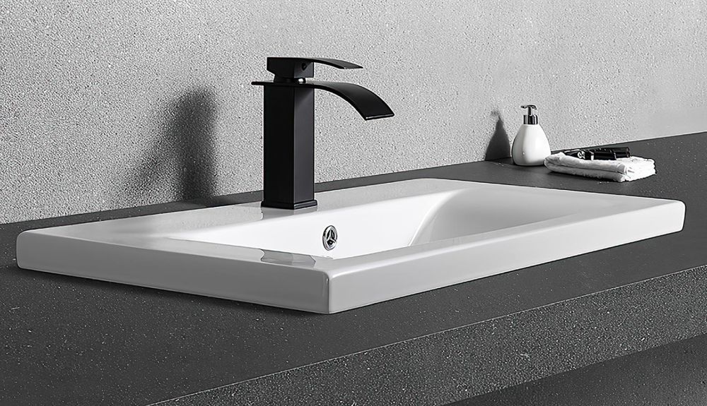 Раковина врезная на столешницу CeramaLux N 9393-90, размер 900х395 мм, со сливом-переливом и отверстием под смеситель, цвет белый.
