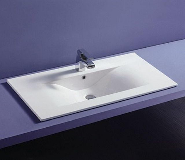 Раковина врезная на столешницу CeramaLux N JY-807-90, размер 910х460 мм, со сливом-переливом и отверстием под смеситель, цвет белый.