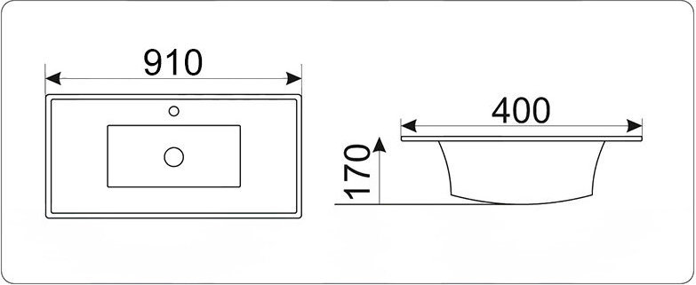 Раковина врезная на столешницу CeramaLux N YJ-803-90, размер 910х400 мм, со сливом-переливом и отверстием под смеситель, цвет белый.