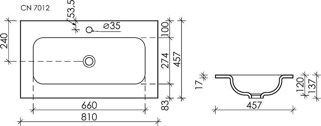 Раковина врезная на столешницу Ceramicanova Element CN7012, размер 810х457 мм. Цвет белый.