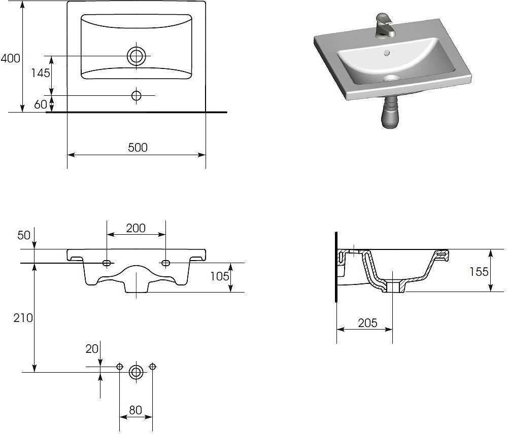Раковина врезная на столешницу Cersanit Como 50 см UM-COM50/1