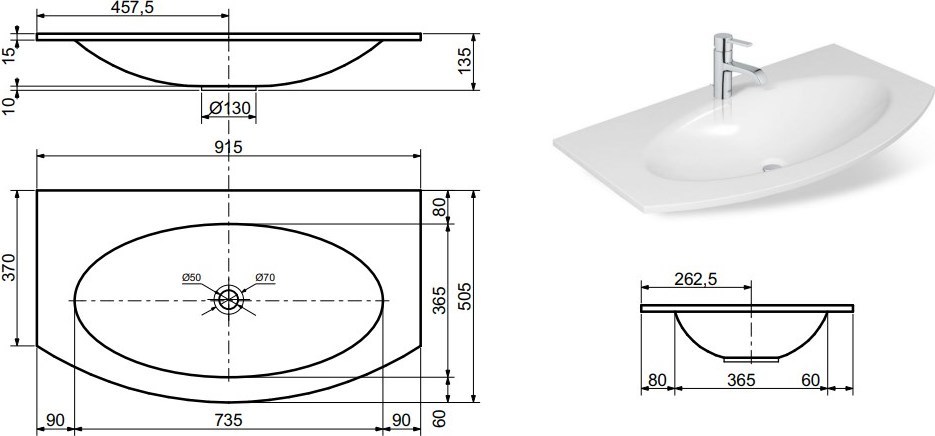 Раковина врезная на столешницу Эстет Мальта 90 см. Цвет белый.