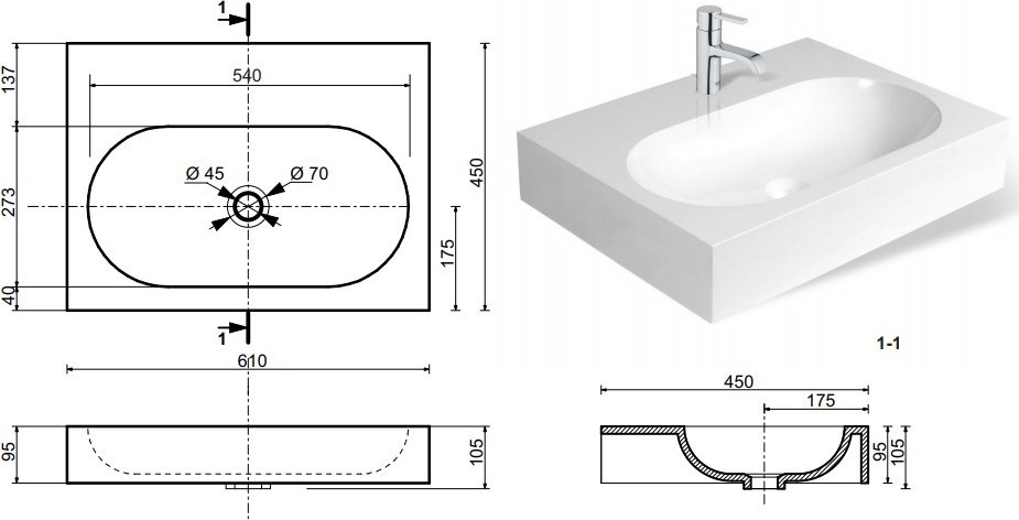 Раковина врезная на столешницу Эстет Ника 60 см ФР-00000795