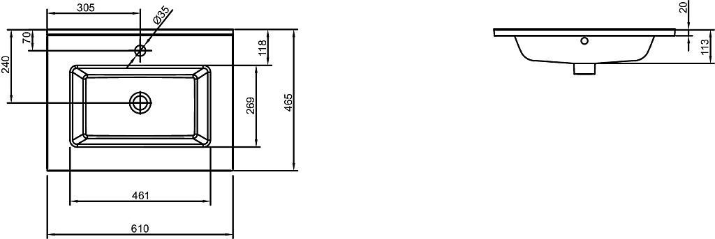 Раковина врезная на столешницу Jacob Delafon Ola 610х465 мм EXSA112-00 с 1 отверстием для смесителя, цвет - белый.