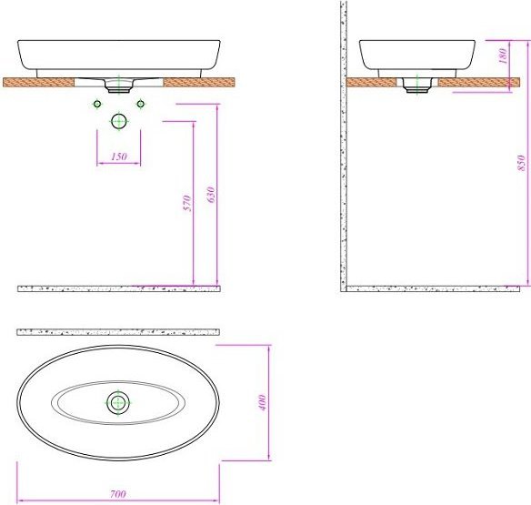 Раковина врезная на столешницу Kale DOVE 70 см