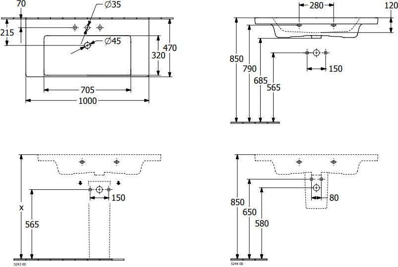 Раковина врезная на столешницу Villeroy&Boch Subway 3.0 100 см 4A70A501, цвет белый.