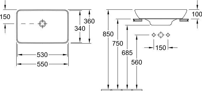 Раковина врезная на столешницу Villeroy&Boch Venticello 55 см 41135501