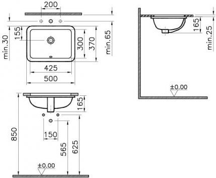 Раковина врезная под столешницу Vitra S20 43 см 5474B003-0618