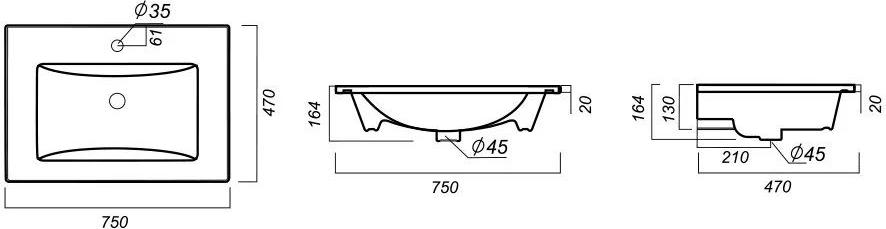 Раковина врезная Sanita Luxe Quadro 75 см WB.FN/Quadro/75-C/WHT.G/S1