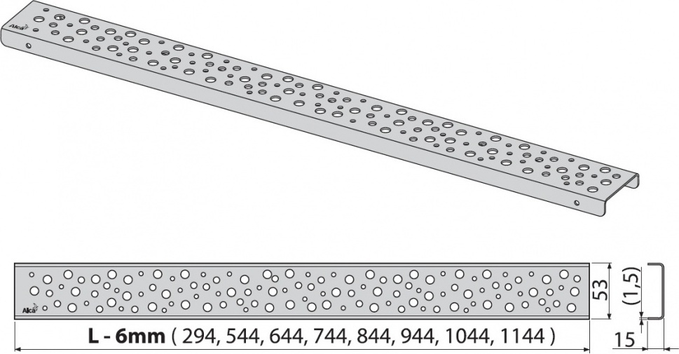 Перфорированная решетка AlcaPlast BUBLE-300L матовая для водоотводящего желоба 300 мм.